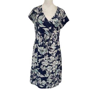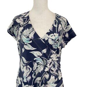 Soft Surroundings Tropical Floral Faux Wrap Short Sleeve Stretch Dress sz Large