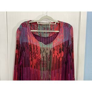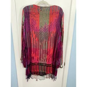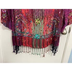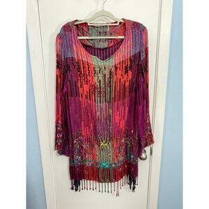 Soft Surroundings Tunic Blouse Large Red Tapestry Embroidered Fringe Boho, great condition.