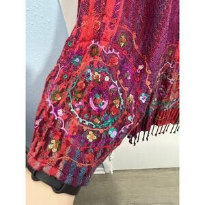 Soft Surroundings Tunic Blouse Large Red Tapestry Embroidered Fringe Boho