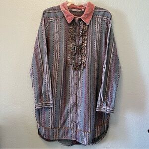 Soft Surroundings Tunic Elena Topper, Grey, Salmon Color, Embroidered Back XL