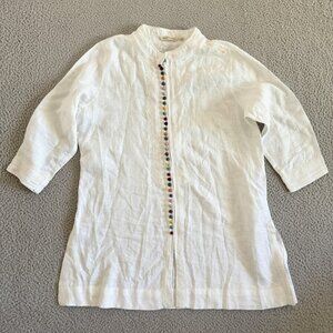 Soft Surroundings Tunic Womens Petite Large White Embroidered Linen Boho Top Jacket