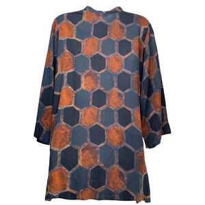 Soft Surroundings Millefiori Blue Geometric Print Sequin Tunic Top Blouse Size M