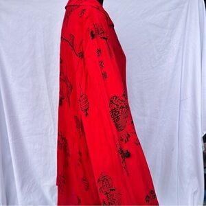 The shirt is easy to care for and can be hand washed only. It comes in a vibrant red color with French knot buttons and fabric buttons accents. This tunic shirt is a perfect addition to any wardrobe, suitable for all seasons, including winter, summer, fall, and spring.