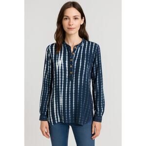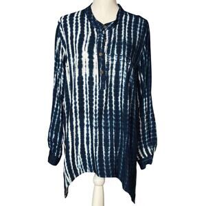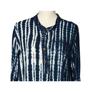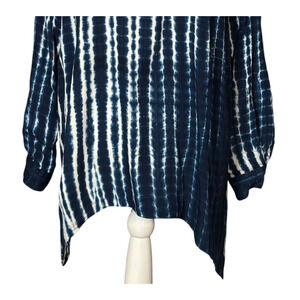 Soft Surroundings Tunic Size XL Blue Geometric Long Sleeve Tie Dye Artsy Casual