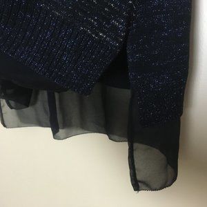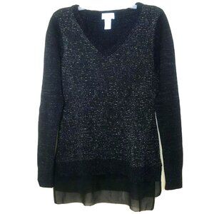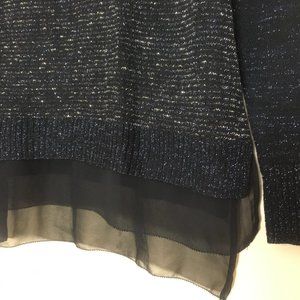 Soft Surroundings Tunic Sweater Small Black Metallic Wool Sheer Chiffon V-neck