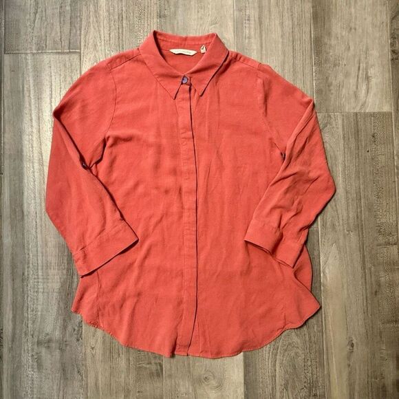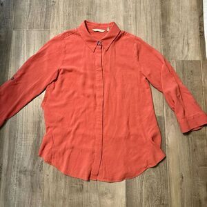 Soft Surroundings Tunic Top Orange Cotton Gauzy Button Up Shirt Over Sized Long Sleeves Sz S