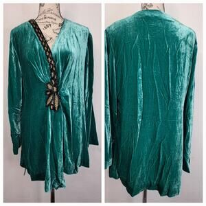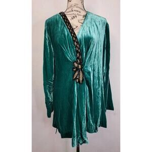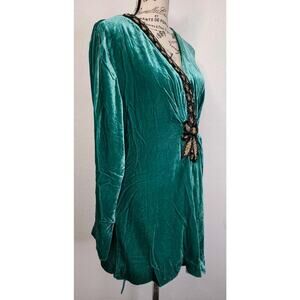 Soft Surroundings Tunic Top SZ S Green Velvet Embellished Boho Whimsycal Fairy