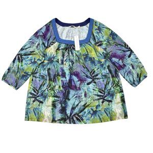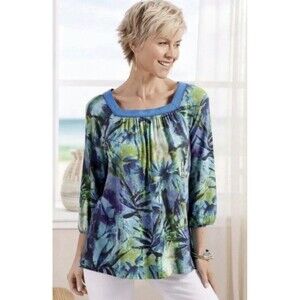 Soft Surroundings Tunic Top Size Large Odessa Blue Tropics Floral Relaxed NEW