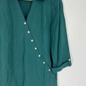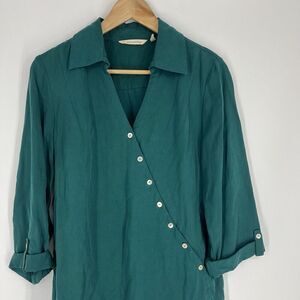 Soft Surroundings Tunic Top Size Small Womens Green Asymmetrical Tencel Shirt