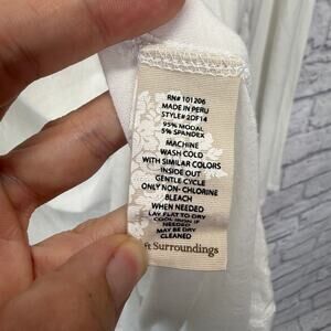Soft Surroundings Tunic Top Size XL White V-Neck Hi-Lo Hem Long Sleeve Boho