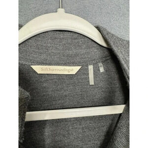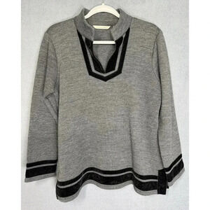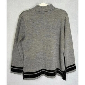 Soft Surroundings Tunic Top Women’s Petite Medium Gray Runway Wool Blend Knit Velvet Trim. Gently used with no flaws found. Measurements in photos. Midweight split neck sweater top (1.3lbs). Fast shipping!