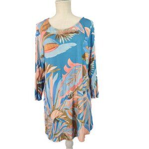 Soft Surroundings Tunic Women's L Floral Palm Leaves 3/4 Sleeve Scoop Neck Blue