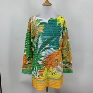 SOFT SURROUNDINGS TUNIC WOMENS MP PETITE STRIPED TROPICAL BURNOUT TEXTURED TOP