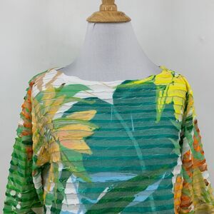 Soft Surroundings Tunic Womens MP Petite Striped Tropical Burnout Textured Top