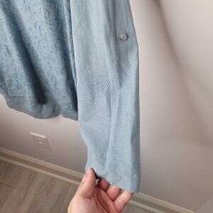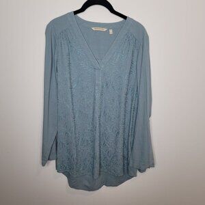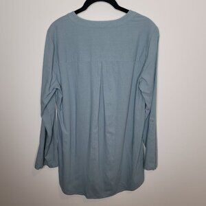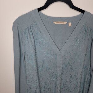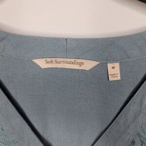 Soft Surroundings V Neck Tab Sleeve Embroidered Linen Tunic