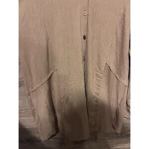 Soft Surroundings Tunic sz 1X Tan Decorative Buttons Top Blouse Plus Stretch