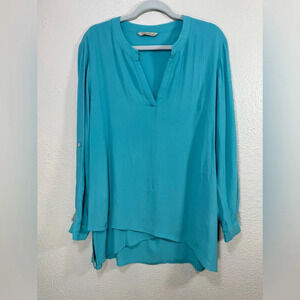 Soft Surroundings Turquoise Asymmetric Layered Roll Tab Tunic Top