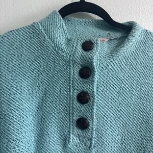 Soft Surroundings Turquoise Set Sail Pullover Sweater 4 Button chunky womens Med