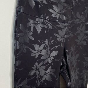 Soft Surroundings black 'Twilight Floral' legging pants. Hidden flat elastic waistband, pull on style with tummy control. A beautiful metallic sheen floral print on these thick, stretchy pants. Sadly I purchased the wrong size for myself to wear postpartum. Stock photo to show fit, video to show off lovely fabric. New without tags.