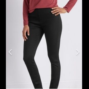 Mix between jeans and trouser slacks pants. Ankle-zip detail. Stretchy elastic waistband. Women's size medium.