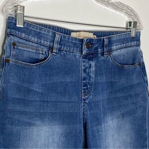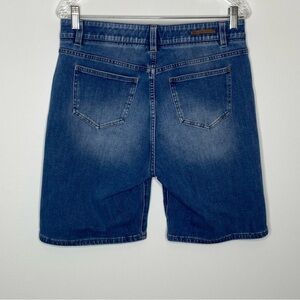 Soft Surroundings Ultimate Medium Wash Kinsley Denim Pull On Shorts. Faux zipper front with functional button, classic five pocket styling with longer length shorts. New without tags. Stock photos included to show fit.