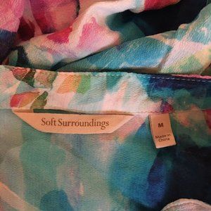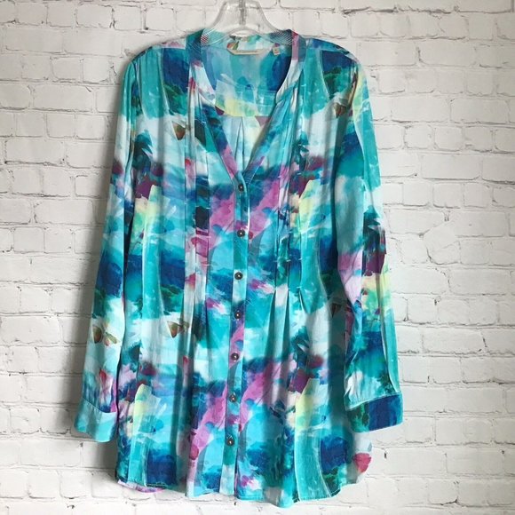 Soft Surroundings Ursa Tunic M Medium Colorful Rayon Blouse Pleat Details V Neck