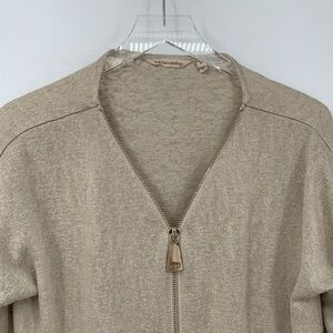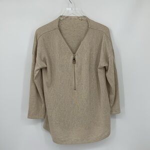 Soft Surroundings Valentina slub knit sweater zipper gold tan top stretch XL