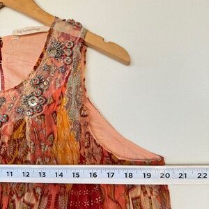 Soft Surroundings Vanessa Maxi Dress Kaftan Small Boho Summer Casual Embellished Patchwork Pattern