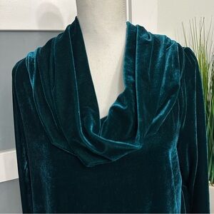 Soft Surroundings Velvet Asymmetrical Hem Cowl Neck Tunic Large Teal Lagenlook