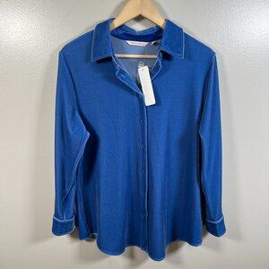 Soft Surroundings Velvet Boyfriend Shirt Size Medium Petite Coastal Blue Buttons