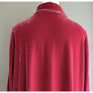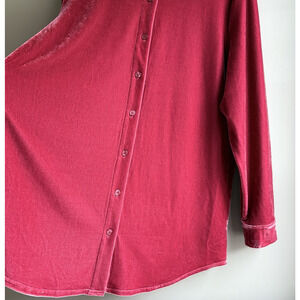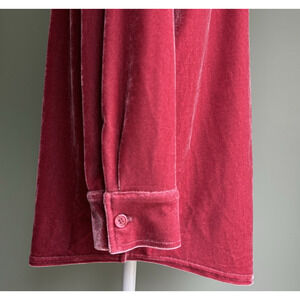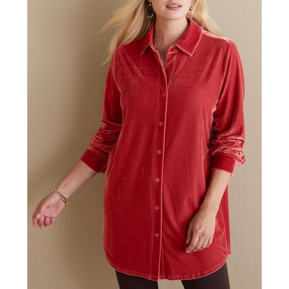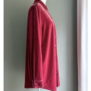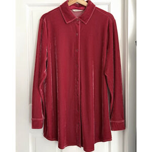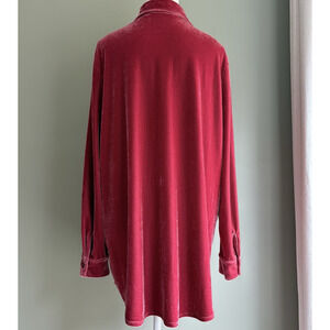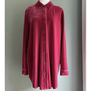 Soft Surroundings Velvet Boyfriend Tunic Button Up Shirt Garnet Red Cozy Luxe L