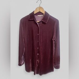 Soft Surroundings Velvet Boyfriend Tunic Top Shirt BlackBerry Wine Size Small