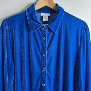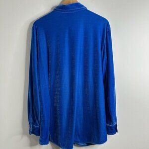 Soft Surroundings Velvet Button Down Shirt Womens XL Blue Velour Boho Stretch