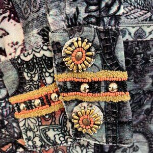 Soft Surroundings Velvet Floral Patchwork Beaded Gemmed Long Sleeve - Size M