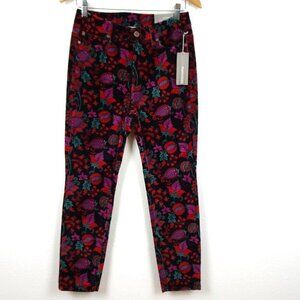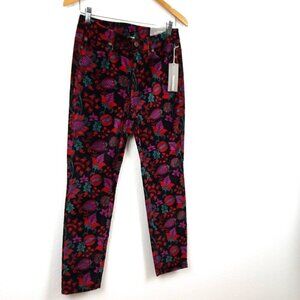 Soft Surroundings Velvet Pants Women's Petite Size 4P Multicolor Floral Skinny