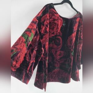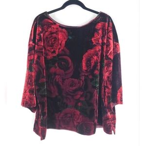 Soft Surroundings Velvet Roses Print Top Blouse Size XL