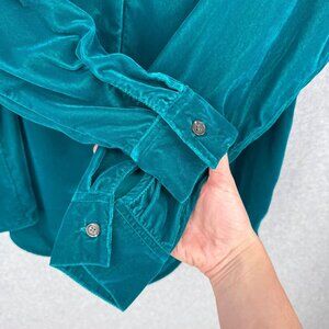 • Velvet, Button Front, Classic, Oversized, Tunic, Blouse, Shirt, Long Sleeve