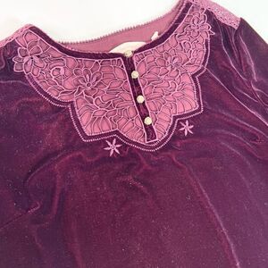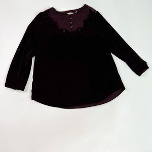 Soft Surroundings Velvet Blouse Womens Small Purple Crew Button Detail Pullover