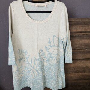 Soft Surroundings Veranda Sweater Women's L Boho Blue Floral Knit Pullover Tunic