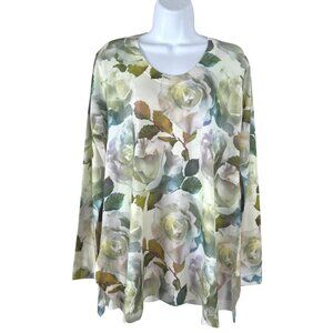 Soft Surroundings Vintage Rose Tunic Top Large Gardenia Floral Long Sleeve NWT TP-3507