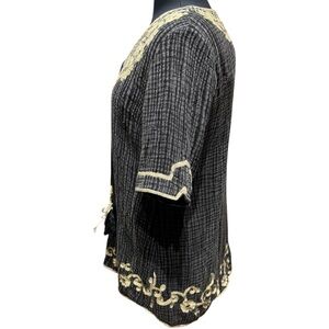 Soft Surroundings Vintage Sahara Embroidered Black Cream Gauze Tunic Size Large