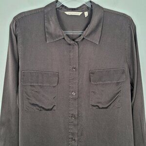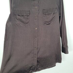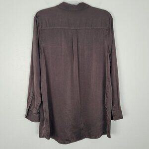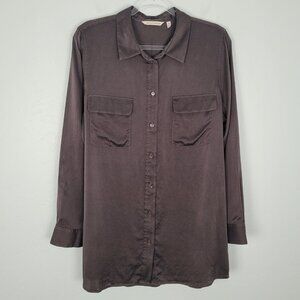 Soft Surroundings Vivi Silk Button Up Shirt Blouse Long Sleeve Brown Size XL