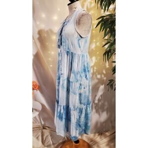 Soft Surroundings Wailana Tiered Button Tassel Tie Dye Maxi Dress Sz PS Pockets
