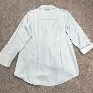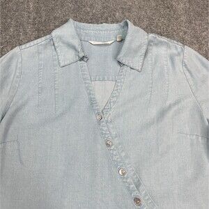 Soft Surroundings Washed Tencel Crossover Tunic Top Womens Medium Blue Chambray