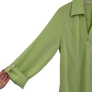 Soft Surroundings Washed Tencel Wrap Button Up Asymmetric Tunic Top Green Medium