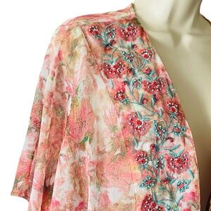Soft Surroundings Watercolor Beaded Long Cardigan Topper Size L Colorful Beachy
