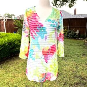 💖 Soft Surroundings Watercolor Floral Ribbed Tunic Knit Pullover Top