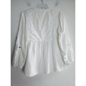 Soft Surroundings White Baby Doll Floral Embroidery Flax Linen /Cotton Blouse sz Small