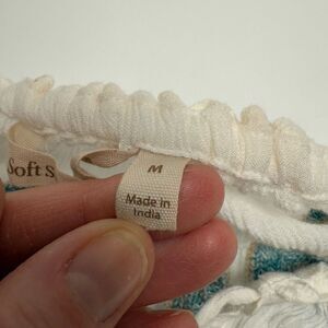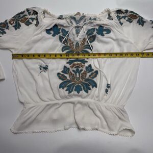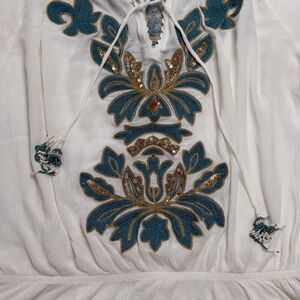 Soft Surroundings White Blue Embroidered Tunic Blouse Top M Medium Shirt beaded Tassels