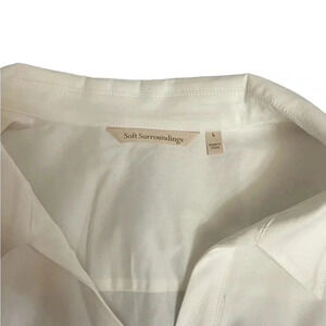 Soft Surroundings White Cotton Side Pockets Button Down Long Sleeve Shirt Size Large